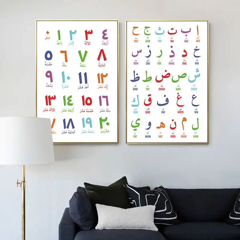 Arabic Islamic Wall Art Canvas Painting Arabic Letters Alphabets Numerals Poster Prints Nursery Kids Room Wall Art Decor