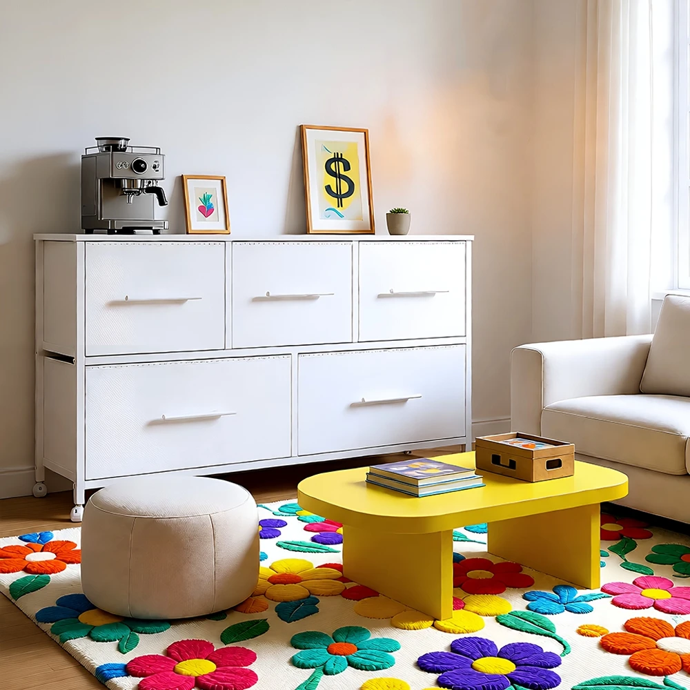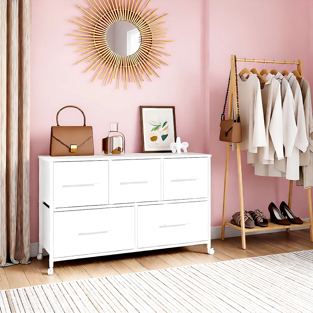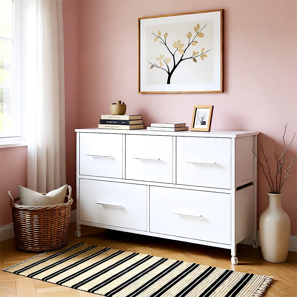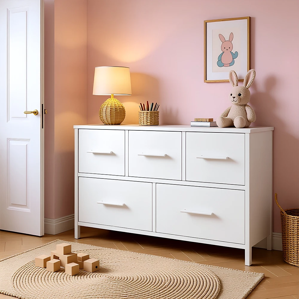 No more chaos - The chest of drawers with 5/6 drawers in 2 different sizes offers plenty of space, so you can store clothes, books, toys, snacks etc. in an orderly way.