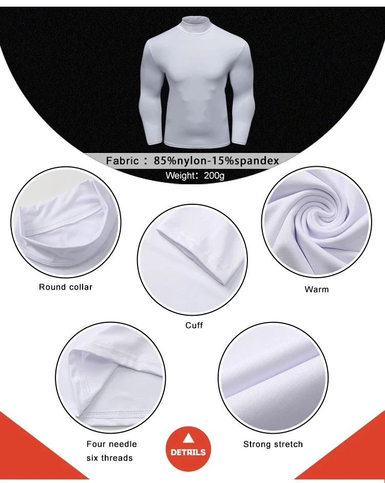 Cody Lundin White Athletic Compression Running Shirts For Men Stretchy Long Sleeve Turtleneck Slim Gym Fitness Clothes