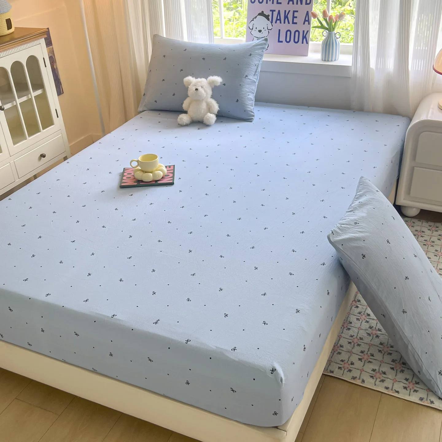 Simple Bow Bed Sheets Set Princess Fitted Sheet Set Non Slip Bedspread With Elastic Band Mattress Cover Double Bed Sheets